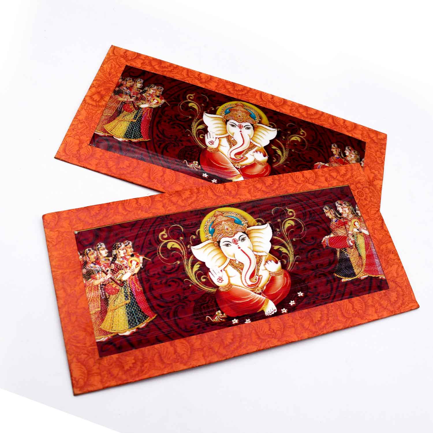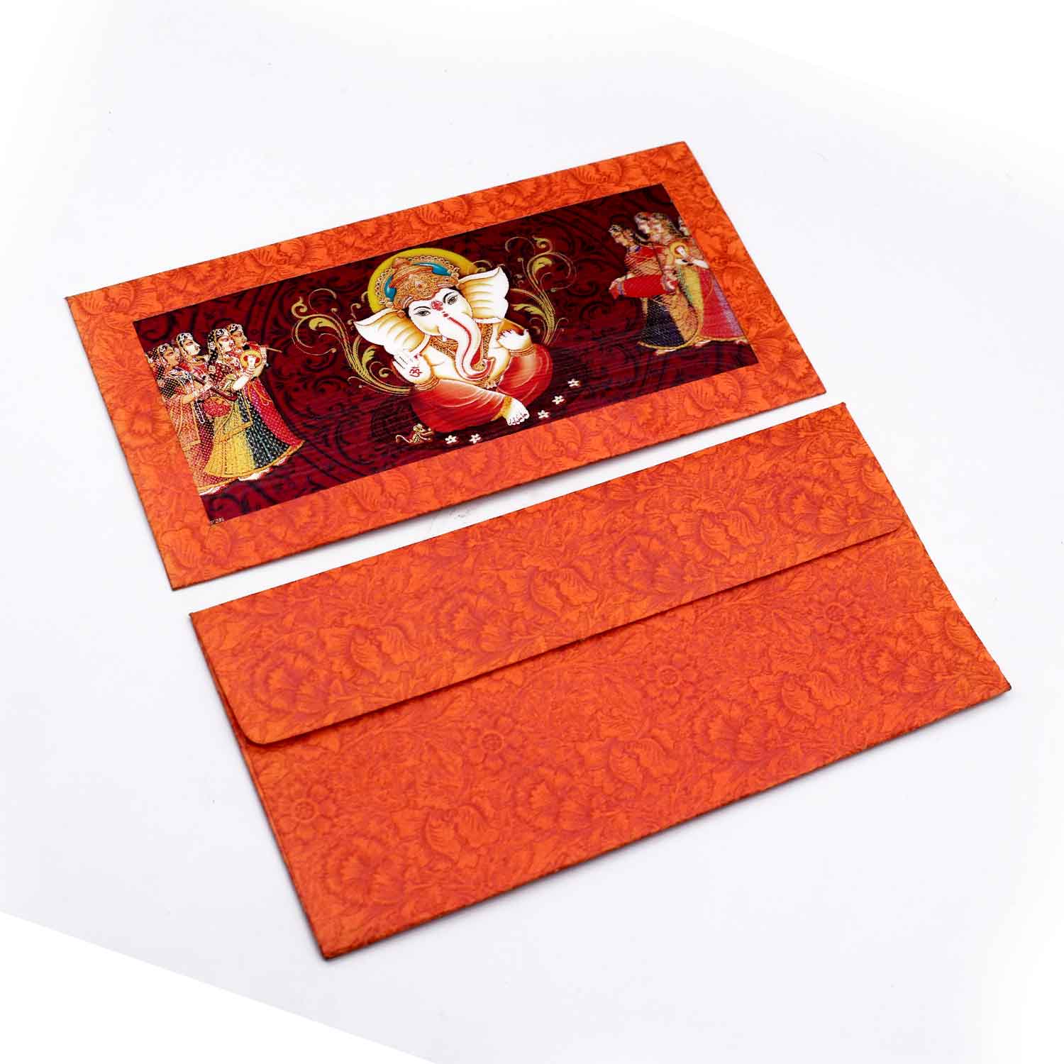 A Ganesha envelope is a type of envelope that is designed with an image or artwork of Lord Ganesha, a Hindu deity who is widely revered as the remover of obstacles and the god of wisdom, knowledge, and new beginnings.