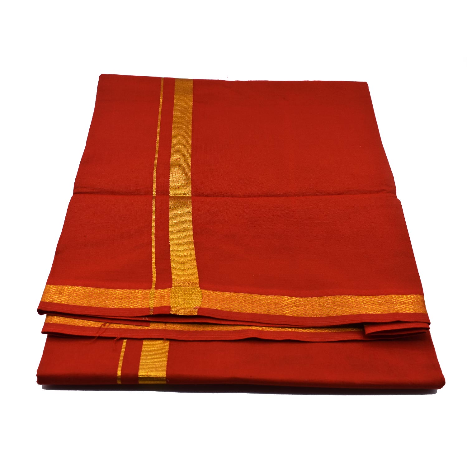 This traditional Red colored dhoti is made of pure and finest quality cotton. With thick and rich golden border for both religious functions as well as puja ceremonies. With soft and smooth texture, the dhoti is highly comfortable to adorn during all seasons.
