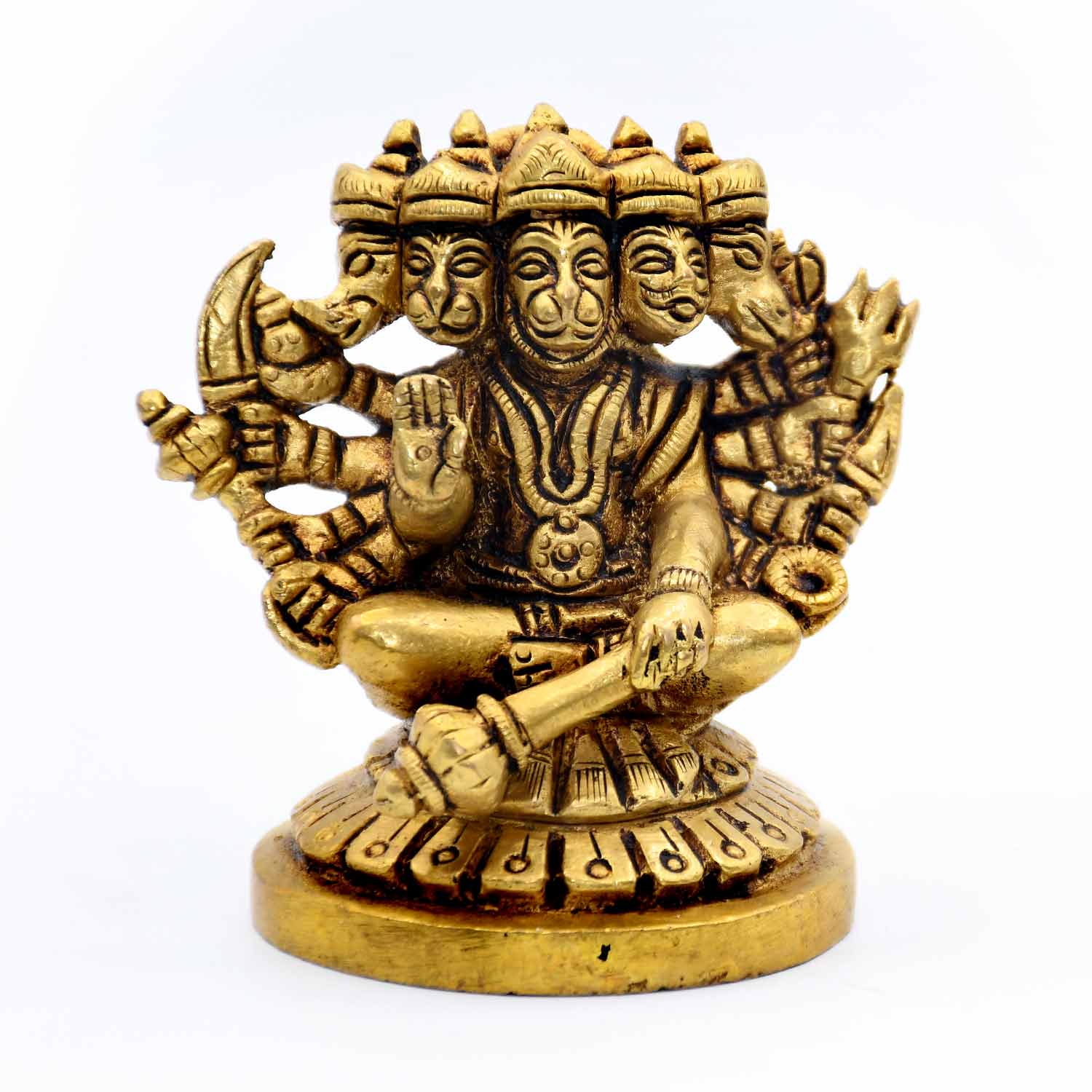 Panchamukhi Hanuman is a unique depiction of the Hindu deity Hanuman, who is revered for his devotion, strength, and loyalty. The Panchamukhi Hanuman idol is depicted with five faces, each facing in a different direction, representing the five directions of north, south, east, west, and upward. Each face also symbolizes a different aspect of Hanuman’s personality and power. The first face of Panchamukhi Hanuman is that of a monkey, representing his playful and mischievous nature. The second face is that of a human, representing his intellect and wisdom. The third face is that of a boar, representing his courage and strength. The fourth face is that of a lion, representing his ferocity and power. And the fifth face is that of an eagle, representing his ability to soar to great heights and see beyond the mundane.