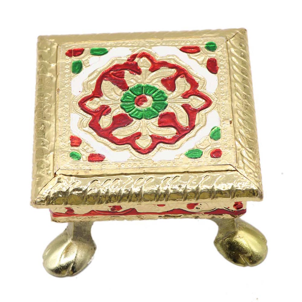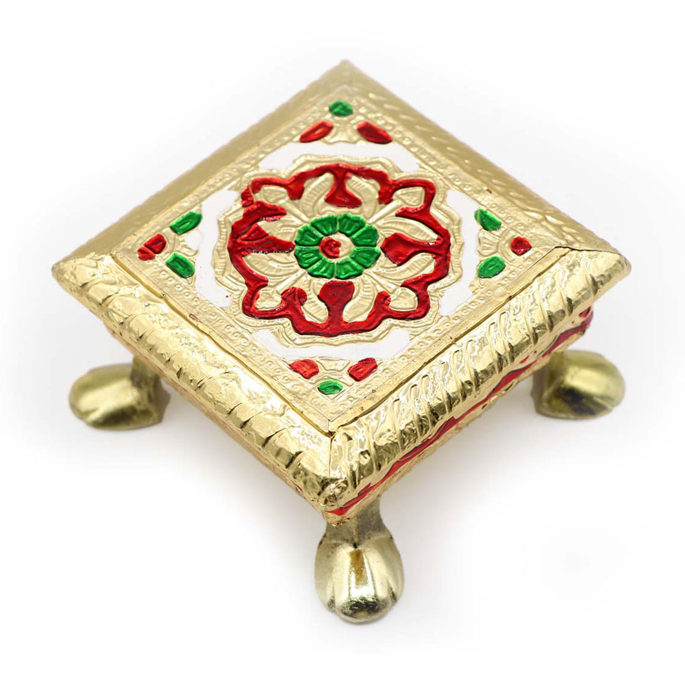 A Pedestal or ‘Chowki’ on which to place your statue, with ornate enamel ‘minakari’, used for its hardness and resistance to corrosion. Floral patterns hand-painted in beautiful colors and gold plating, give a rich and stylish look.